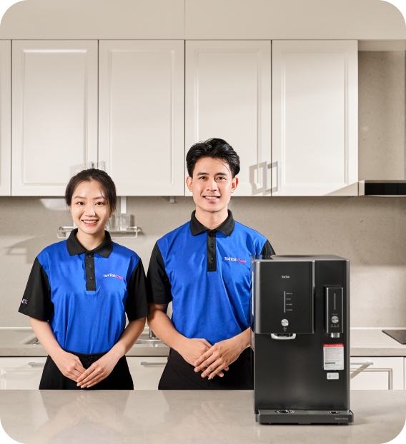 Dịch vụ được thực hiện tại nhà bởi nhân viên Toktokcare được đào tạo theo chuẩn, tác phong chuyên nghiệp, phong thái nhiệt tình, với lõi lọc chính hãng.